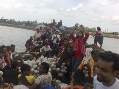 দেশী নৌকা সম্পর্কে আমার খুব একটা ধারনা ছিলনা, মনে করেছিলাম আমরা ২২ জন সাথে হয়ত আরো ৫ /১০ জন নিয়েই রওয়ানা দিবে। কিন্তু একি মানুষ আর মালামাল উঠছেতো উঠছেই শেষই হচ্ছে না। আনুমানিক ২০ ফিট বাই ৭ ফিট এই নৌকাতেই ৭০ জনের মতো লোক উঠল সাথে কয়েক মণ বিভিন্ন ধরেনর মালামাল বোঝাই করা হলো নৌকায়। অবশেষে বাংলা টাইম ৯ টার নৌকা ছাড়লো ১০:২০ মিনিটে। ছোট খাল জোয়ারের পানিতে টুইটুম্বুর, সেই খাল ধরে আমরা এগিয়ে যাচ্ছি নাফ নদীর দিকে। কিছুদুর যাওয়ার পর নাফ নদীর প্রবেশ পথেই আছে বিডিআর চেক পোস্ট, নিরাপত্তা চেকিং এর জন্য নৌকা এখানে দাড়ালো দুইজন বিডিআর জওয়ান এসে দেখে গেলেন নৌকায় কোন অবৈধ মালামাল আর কোন বর্মী নাগরিক আছে কিনা। আবার নৌকা চলতে শুরু করলো নাফনদীর দিকে।