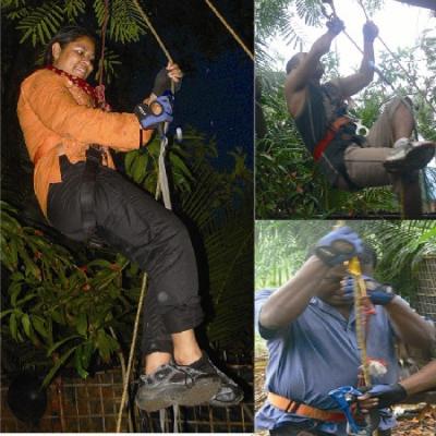 দুপুরে একটু বিশ্রাম করে বিকাল বেলা শুরু হলো আমাদের মাউন্টেইনার বাবু ভাইয়ের র্যাপলিং বড় একটি গাছের সাথে দড়ি ঝুলিয়ে পর্বতারোহন প্রশিক্ষন। সবাই বেশ আগ্রহভরে দড়িতে ঝুললো । সব চাইতে মজার ব্যাপার হলে মঞ্জু ভাই যখন ঝুললেন বেচারা মাঝামাঝি গিয়ে আটকে গেলেন না পারেন উপরে উঠতে আর না পারেন নিচে নামতে সকলের মাঝে হাসির রোল।