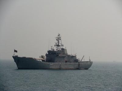 দ্বীপের কাছে নোঙর করা নৌবাহীনির জাহাজ