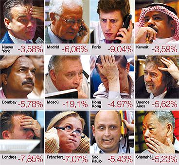 গতকাল শেয়ারের দর পতন সংবাদে বিশ্বের বাঘব বোয়াল কোম্পানীর প্রতিনীধিরা লোকশান গুনতে গিয়ে কিভাবে কপাল চাপড়াচ্ছে সেটি সম্মানিত ব্লগারদের সাথে ভাগাভাগি করার জন্যই এই সাময়িক পোষ্ট।