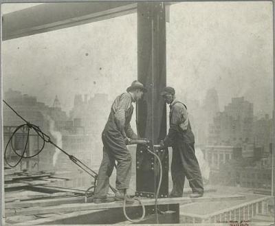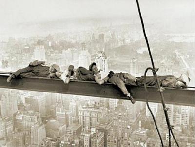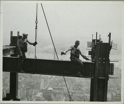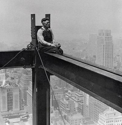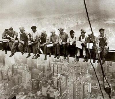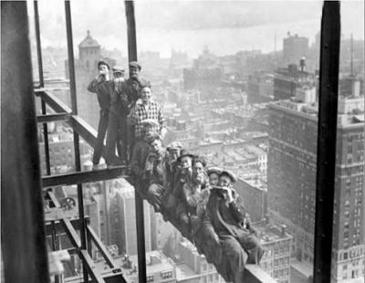 বিংশ শতাব্দীর শুরুতে নিউইয়র্ক শহরে নির্মানাধীন গগনচুম্বী অট্টালিকার নির্মানশ্রমিকদের ছবি
