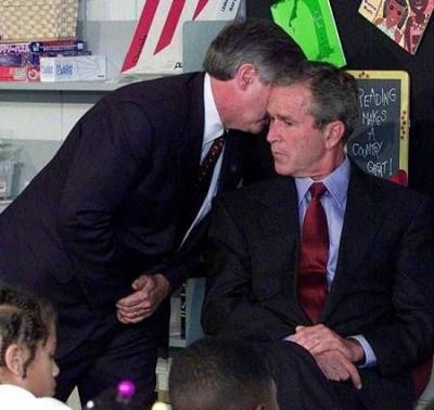 ১২. ১১ সেপ্টেম্বরের দুর্ঘটনার কথা শোনার কালে প্রেসিডেন্ট বুশ ।