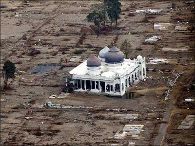 সরাসরি পয়েন্টে আসি। প্রথমত ছবিটা জাপানের না, ইন্দোনেশিয়ার বান্দা আচেহ'র। দ্বিতীয়ত এটা জাপানের সুনামির সামসময়িক ছবিও না, এটা ২০০৪ সালের ঘটনা। তৃতীয়ত, মসজিদের পাশে কিছু কুঁড়েঘর আর তাঁবু ছিল (নিচে উৎস দেয়া আছে), সুতরাং বাড়িঘর ভেঙ্গে গেলেও পাকাপোক্ত মসজিদ ঠিকই টিকে আছে, যদিও মসজিদের অনেক অংশই ভেঙ্গে গিয়েছে যা ভালো করে না দেখলে বোঝা যায় না।