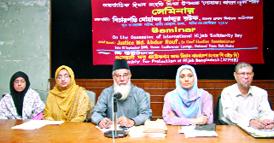 আন্তর্জাতিক হিজাব সংহতি দিবস উপলক্ষে আয়োজিত এক সেমিনারে গতকাল এ কথা বলা হয়। জাতীয় প্রেস ক্লাবে ‘দি উইটনেস’ ও ‘এসেম্বলি ফর প্রটেকশন অব হিজাব’ এর উদ্যোগে দি উইটনেসের সভাপতি নাসিমা হাসানের সভাপতিত্বে এতে প্রধান অতিথি ছিলেন সাবেক প্রধান নির্বাচন কমিশনার বিচারপতি মোহাম্মদ আব্দুর রউফ। বিশেষ অতিথি ছিলেন সাবেক সচিব শাহ আবদুল হান্নান এবং দি নিউনেশন পত্রিকার সম্পাদক মোস্তফা কামাল মজুমদার। বক্তব্য রাখেন মিটফোর্ড হাসপাতালের মেডিক্যাল অফিসার ডা. মিনা মমতাজ সাবেকা, সাহিত্যিক সাংবাদিক মাহবুবুল হক, দারুল ইহসান বিশ্ববিদ্যালয়ের সহকারী অধ্যাপক কানিজ ফাতেমা ও দি ইউটনেসের সেক্রেটারি জেনারেল ড. শারমিন ইসলাম। মূল প্রবন্ধ উপস্থাপন করেন বুয়েটের সহযোগী অধ্যাপক ড. সৈয়দা সুলতানা রাজিয়া।