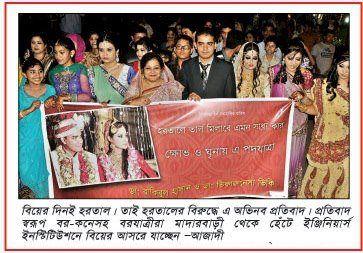 বিয়ের দিনে হরতাল,তাই বর কনের অভিনব প্রতিবাদ!