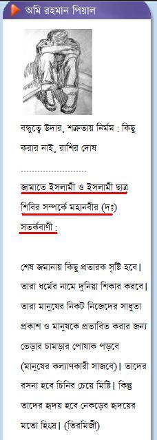 বিষয়টা বেশ Serious বোঝা যাচ্ছে। সবার মধ্যকার ইবলিস শয়তানটা আবার জেগে উঠেছে। Blog এ রাসুল (সাঃ) এর হাদীস নিয়ে তামাশা শুরু হয়েছে। মূলহোতা কে জানি না তবে এই ছবিটি লক্ষ্যণীয়।