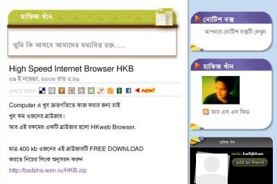 গত দুই দিন ধরে হাফিজ খাঁন নামে একজন ব্লগার "High Speed Internet Browser HKB" শিরোনামে বাংলাদেশ সময় অনুযায়ী ভোর রাতের দিকে পোষ্ট করে যাচ্ছেন।