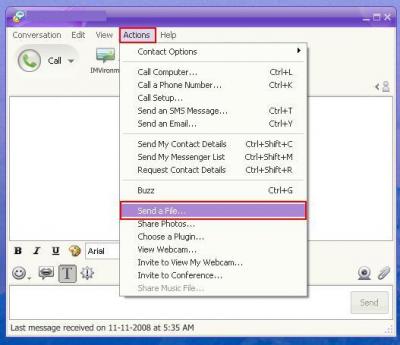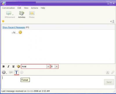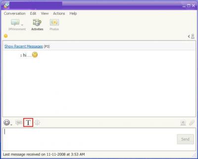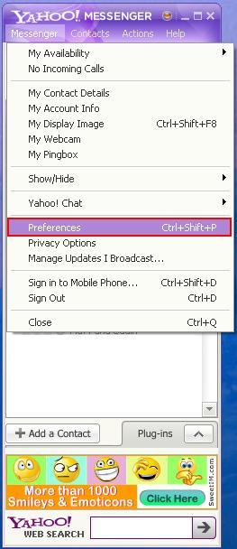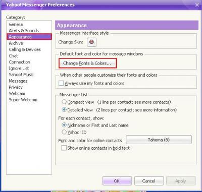 ০৯. আর বারবার Font বদলালো যদি আপনার কাছে বিরক্তিকর মনে হয় হবে Default Font হিসেবে যে কোন বাংলা Unicode Font Select করে রাখতে পারেন। এইজন্য Yahoo! Messenger এর "Message" বার এ Click করে "Preference" Select করুন অথবা Ctrl + Shift + P চাপ দিন।