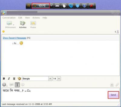 আর মোটামুটি একই ভাবে Windows Live Messenger এ বাংলায় Chat করতে পারবেন।....
