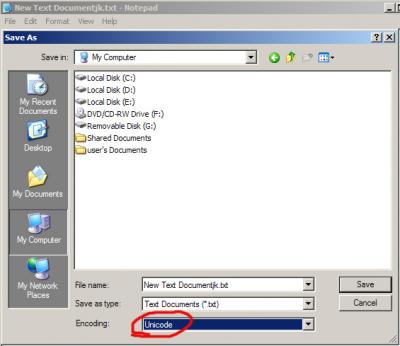 তখন আপনি cancel এ ক্লিক করুন। এরপর save এ ক্লিক করে Encoding অপশনে গিয়ে UNICODE/UTF-8 সিলেক্ট করলেই সমস্যা সমাধান হয়ে যাবে। নিচের চিত্রের মতো অনুসরন করুন।