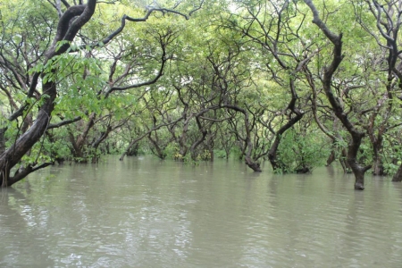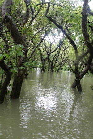 সাত-আট ফিট পানির নিচে আর বাকি অংশ উপরে এরকম ঘন হিজল বনের মাঝে ঝুপ করে গাছগাছালির ডালপালার ফাঁক গলে ঢুকে গেলাম ভেতরে। বাকীটা শুধুই মুগ্ধ হওয়া। ফেরার পথে আরেকটা সোয়াম্প ঝোপের ভিতর ঢুকে বন্ধ করে দেয়া হলো আমাদের ট্রলারের ইঞ্জিন। বাতাসের শনশন শব্দ, হাওরের পানির কুলকুল ধ্বনি আর গাছের পাতা থেকে পড়া পানির টুপটুপ শব্দ আর সাথে নিস্তব্ধ নীরবতা!! এর বেশী বর্ননা আর সম্ভব না; চোখ বন্ধ করলেই যা অনুভব করতে পারি এখনও।