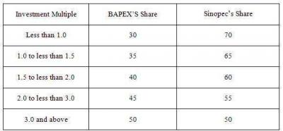 টেবিল: সিনোপ্যাক-বাপেক্স জয়েন্ট ভেঞ্চার চুক্তি অনুযায়ী গ্যাস ভাগাভাগি