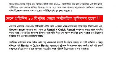 কিন্তু প্রকৃত “উৎপাদন ক্ষমতা” যাই হোক, প্রশ্ন হলো প্রকৃত “উৎপাদন” কত এবং সেখানে কুইক রেন্টালের অবদানই বা কত? এবং সেইটুকু কুইক রেন্টাল ছাড়া অন্য কোন উপায়ে একই সময়ে উৎপাদন বাড়ানো যেত কি-না?