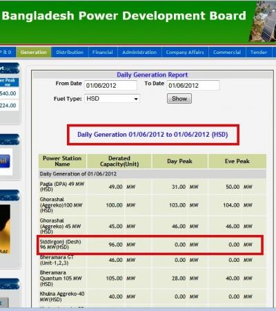 খোজ খবর করে আরো জানা গেল, দেশ এনার্জির Siddirgonj (Desh) 96 MW(HSD) বিদ্যুৎ কেন্দ্রটি তৈরী করা হয়েছে সিদ্ধিরগঞ্জ বিদ্যুৎ কেন্দ্রের ভেতরে পিডিবি’র জমিতে যেখানে সরকার চাইলে খুব সহজে ৩০০ মেগাওয়াট বেজ লোড বিদ্যুৎ কেন্দ্র নির্মাণ করতে পারতো।