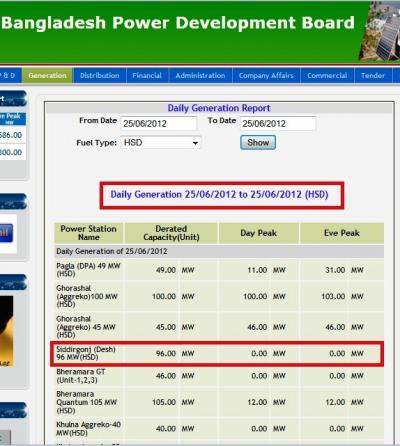 ছবি:১ গত ২৫ জুন ১০০ মেগাওয়াটের দেশ রেন্টাল পাওয়ার প্ল্যান্ট থেকে শূন্য(০) মেগা্ওয়াট বিদ্যুত উতপাদন