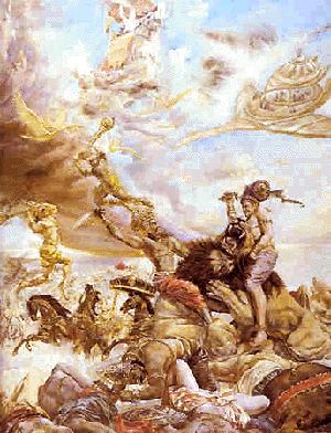 এদিকে দেবতারা যুদ্ধে নিহত হলে অঙ্গিরা পুত্র বৃহস্পতি তাদের বাঁচাতে পারেন না।