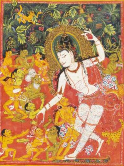 দেবযানীর ভয়ে রাজা বিরস বদনে শিশু তিনটিকে কোলে নিলেন।