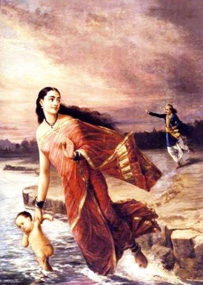 শেষে আবার তার পুত্র জন্মায়। এই অষ্টম পুত্রকে নিয়ে গঙ্গা জলে নামেন।