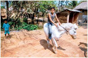 মোতি সুস্থ হওয়ার পর থেকেই এলাকার শিশুরা তার পিঠে চেপে প্রতি দিন বিকালে রাস্তায় ঘুরে বেড়ায়। স্কুল ছাত্র সব্যসাচী দাস, গৌরহরি দাস বলে, “মোতির পিঠে চেপে প্রতি দিন রাস্তায় ঘুরে বেড়াই। কিন্তু তাতে মোতির কষ্ট হয় বুঝতে পারি।” গ্রামের বাসিন্দা পার্থ চট্টোপাধ্যায় মোতিকে আদর করতে করতে বলেন, “মুক্তোর রং সাদা। আমাদের ঘোড়াও সাদা। সে জন্য মোতি নাম রেখেছি। ওর প্রতি আমাদের একটা মায়া পড়ে গিয়েছে।”