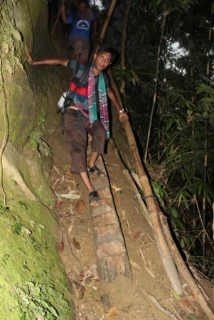 এখান থেকেই আমাদের ট্রেকিং শুরু হল। ৫.০০ টা বাজে আমরা থানচি থেকে বোর্ডিং পাড়ার উদ্দেশ্যে রওনা হলাম। অতিরিক্ত খাবার ফলে একটু হাটতেই শরীর খুব গরম হয়ে গেল। তবুও আমাদের আজকের মধ্যেই বোর্ডিং পাড়াতে পোঁছাতে হবে। তাই কষ্ট করে হলেও হাটতে হল। এই রাস্তাতে ১ম জোকের আক্রমণের শিকার হলাম। তাই আমাদের প্রায় গ্রুপের সবাই খুব ভয় পেতে শুরু করল। তার উপর সন্ধ্যা শেষে রাত নামতে শুরু করল। জোক, পিচ্ছিল এবং প্রচন্ড বিপজ্জনক রাস্তা সব মিলিয়ে প্রতিটা পদক্ষেপ ছিল গা ছমছম করার মত।