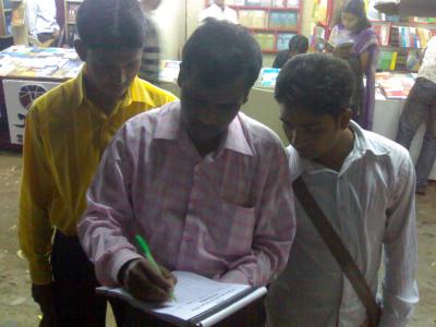 বিকাল ৫ টার দিকে গেছিলাম বইমেলায়। ওখানে পরিচয় হলো রুবেল, কৌশিকদা, চটপটি, প্রত্যুৎপন্ন(আইডি টা পুরো মনে নাই) আর আমার ব্লগের একজন ব্লগারের সাথে। মন্জুরুল হক আর অরণ্য আনাম যেকোন কারনেই হোক আজকে আসতে পারেনি। প্রায় ৩-৪ ঘন্টা ছিলাম ওখানে। উপমার দান বাক্সে সামান্য কিছু দান করলাম(বেকার মানুষ)। অনেক্ষন থাকলেও সত্যি বলতে গেলে ওদেরকে তেমন কোন সাহায্য করতে পারিনি(যদিও যাওয়ার মূল উদ্দেশ্য ছিল গণসাক্ষর সংগ্রহে সাহায্য করা) বরং ওদের ঝামেলাই কিছুটা বাড়িয়েছি। সত্যিই উপরে যাদের নাম নিলাম, অনেক কষ্ট করছে ওরা।মুগ্ধ হলাম ওদের কাজ দেখে। কয়েকটা ছবি শেয়ার করছি আজকের বইমেলার।