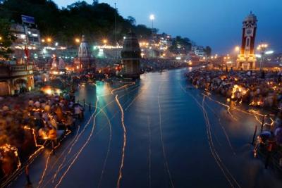 হরিদ্বারে গঙ্গা দশহরা উৎসবে প্রদীপ ভাসানোর আয়োজন।