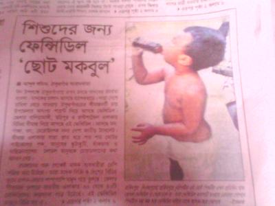 দিনাজপুরের হাকিমপুরে চুড়িপট্টির এই ছোট্ট শিশুটির,প্রতিদিন হাফ বোতল "ফেন্সিডিল" না খেলে চলে না।তার বাবা ফেন্সিডিল ব্যবসায়ী হওয়ায়,ভোক্তারা গোপনে শিশুটিকে অল্প অল্প করে খাওয়াইয়া....আসক্ত কইরা ফালাইছে!