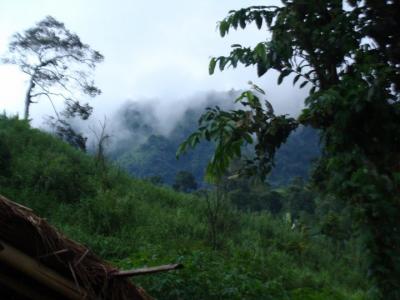 সন্ধ্যা নামতে আর দেরী নেই, চল সালেহীন এবার রওনা দেয়া উচিৎ। ফাইপি ঝর্নার ঠিক পাশ দিয়েই একটি ফাটল উপরের পাহাড়ে উঠে গেছে। সিদ্ধান্ত নিলাম এই ফাটল দিয়েই উপরের পাহাড়ে উঠে যাব। এই পাহাড়ের উত্তরেই শেষ জুম ঘর টা আছে। রাস্তা খুঁজে পেতে খুব একটা সমস্যা হবে না। যেই ভাবা সেই কাজ। ফাটল ধরে আমরা দু’জন পাহাড়ের উপরে উঠে গেলাম। বুনো লতা আর ঝোঁপের জঙল ভেদ করে, শত শত জোঁকের কামড় খেয়ে আমরা উত্তরদিক বরারবর ট্রেকিং শুরু করলাম। পিকে পৌছে নিঃশ্বাস একটু স্বাভাবিক করার জন্য থামতেই দেখি সামনে মদক রেঞ্জের এক অদ্ভুত দৃশ্য। ঘন কালো মেষ পুরো পূব আকাশ ঢেকে ফেলেছে। মদকের পিক গুলো ধীরে ধীরে গিলে ফেলছে দৈত্যাকার মেঘ গুলো। চারিদিকে কেমন ভ্যাপসা গুমোট ভাব। হাজার হাজার পাখি আর উল্লুকদের আর্ত চিৎকারে পরিবেশ কেমন যেন ভীতিকর হয়ে গেল। যে কোন সময় অঝোরে বৃষ্টি শুরু হয়ে যাবে। বৃষ্টির মধ্যে এই রাস্তায় ট্রেকিং করতে কেমন মজা হবে কল্পনা করতেই বুঝি আমাদের হাঁটার গতি দ্বিগুন হয়ে গেল। জিপিএস এ শেষ জুম ঘর টা মার্ক করা ছিল বলে রাস্তা খুঁজে পেতে তেমন সমস্যা হল না। বৃষ্টি আসার আগেই আমরা জুম ঘরে পৌছে গেলাম। আকাশ ইতোমধ্যেই কালো হয়ে গজরাচ্ছে। কিছুক্ষনের মধ্যেই শুরু হয়ে গেল প্রকৃতির তান্ডব।