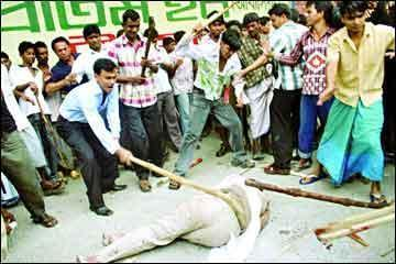 এই ছবি আমরা মিডিয়ায় দেখি। এটা দেখাতে কেউ বাধা দেয় না। এখানে নৃশংসতার সাথে জড়িত সকলের মুখ চেনা যায়, কিন্তু বিশেষ কোনো পরিচয় দিয়ে তাদের চিহ্নিত করা যায় না। তাদেরকে বলা হয় সাধারণ মানুষ। বলা হয় জনগণ। এরকম কর্মকান্ডকে বলা হয়ে থাকে গণধোলাই। ক্রুদ্ধ, বিচার না পেয়ে উন্মত্ত, হঠাৎ সুযোগ পাওয়া নিরীহ মানুষগুলোর উগ্র ও নৃশংস চেহারা বড় বেদনা জাগায় মনে। এই ছবি আমরা দেখতে পাই।
