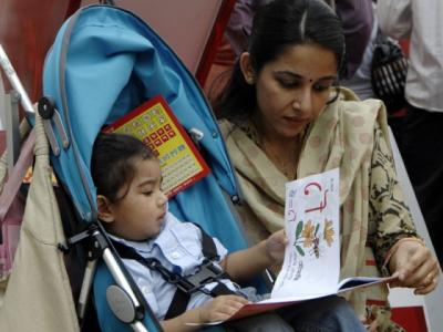 মায়ের সঙ্গে নতুন বই দেখছে এক শিশু।