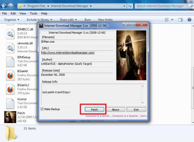 যাই হোক, এই "Patch" ফাইলটি কপি করে নিয়ে গিয়ে পেষ্ট করুন সেইখানে, যেখানে আপনি আইডিএম ইনষ্টল করেছেন। সাধারণতঃ আমরা সবাই ইনষ্টল করে থাকি "সি" ড্রাইভে, প্রোগ্রাম ফাইলসে। সেইখানে গিয়ে আইডিএম এর ফোল্ডারটি ওপেন করুন এবং পেষ্ট করুন এই "Patch" ফাইল। অতঃপর এটি ওপেন করুন। নিচের মত একটি চিত্র দেখতে পাবেন।