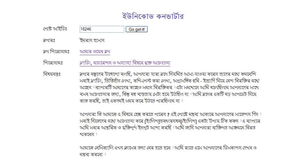 ব্লগার বন্ধুদের উদ্দেশ্যে বলছি, আপনারা যারা ব্লগে নিয়মিত আসা-যাওয়া করেন তাদের মধ্যে কমবেশি সবাই ফ্লাডিং, ভিত্তিহীন লেখা, কপি-পেস্ট করা লেখা, অপ্রাসঙ্গিক ছবি - ইত্যাদি নিয়ে বেশ বিরক্তির মধ্যে আছেন । ব্যাপারটি আমাদের কাছেও সমান বিরক্তিকর । এটা সমাধানে আমি বলেছিলাম আপনাদের সাথে বসব আলোচনার জন্য, কিন্তু বহু ব্যস্ততায় সেটা হয়ে... বাকিটুকু পড়ুন