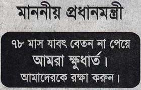 ৭৮ মাস বকেয়া বেতনের দাবিতে আন্দোলনরত ৬০ বছরের পুরনো ইংরেজি দৈনিকটির প্রথম পাতায় সাংবাদিক-কর্মচারীদের প্রধানমন্ত্রী বরাবর প্রকাশিত একটি আবেদনের বিষয়ে বিডিনিউজ টোয়েন্টিফোর ডটকমকে এমনটি জানায়।