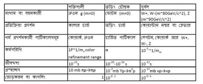 নীচের টেবিল থেকে আরো বিস্তারিত জানা যাবে কে কোন সাব এটমিক পার্টিক্যালের কি অবস্হা: