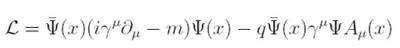 এই ইকোয়েশনের প্রথম দুটো অপারেটরে দেখানো হচ্ছে যে কিভাবে একটা m ভরের পার্টিক্যাল স্হান-কালের স্হানাংকে চলতে থাকে আর পরের অংশটি দেখাচ্ছে যে তড়িৎচৌম্বকীয় একটা পার্টিক্যাল কিভাবে মিথস্ক্রিয়ায় অংশ নেবে যার বলের পরিমান তড়ীৎ চার্জ q নির্ধারিত করা হয়।