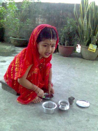 হাঁটি হাঁটি পা পা করে এখন তিনে পড়েছে ও। সবসময় তার সাজুগুজু করার শখ। দু'বছর বয়স থেকেই তার শাড়ী পরার অদম্য শখ। সমস্ত দিন সে বিনা সমস্যায় শাড়ী পরে কাটিয়ে দেয়। আর আমাকে বলে মা বাবাকে বলোতো আমার জন্য পালকি বানাতে। আমি জিগ্যেস করি, কি হবে পালকি দিয়ে? আমি শ্বশুর বাড়ী যাবো। আমাদের নেবে না? হ্যাঁ, তোমরা বাসে করে যাবে। মায়ের গালে হাত না দিয়ে একরাতও ঘুমুতে পারে না। তাই মাকেও তার সাথে নিয়ে যাবে। ভাবি, বড় হলে যখন এসব কথা শুনবে সে, কত লজ্জা পাবে!