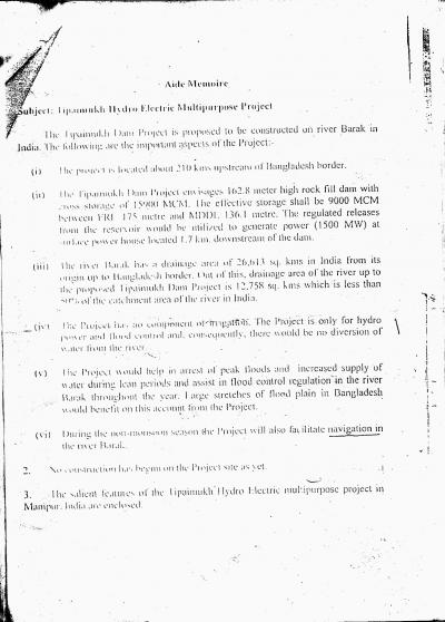 1. Tipaimukh Dam is not an isolated project; it is part of a comprehensive Indian plan of using rivers that flow from India into Bangladesh, and hence needs to be viewed in the broader context of sharing of international rivers by these two countries;