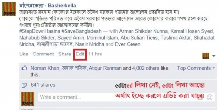 বাঁশেরকেল্লার স্ট্যাটাস দেয়ার পাঁচ ঘন্টা পরে তার এ পোস্ট। কেউ বলতে পারেন যে, তার স্ট্যাটাস দেয়ার পরে বাঁশেরকেল্লার পোস্ট এডিট করে দিয়েছে ? না, কোন প্রকার এডিট করা হয়নি।
