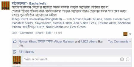 ১- বাঁশেরকেল্লার মূল স্ট্যাটাস, যেটা ১১ ঘন্টা আগে পোস্ট করা হয়েছিল (রাত চারটা থেকে ১১ ঘন্টা পূর্বে)। যাতে মূলত লেখা ছিল-