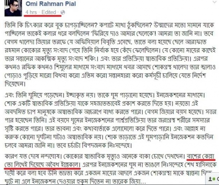 ১ নং ছবিটি দেখে আসুন অথবা আপনাদের সুবিধার্থে নিচে ১ নং ছবিটি আবার পোস্ট করব। সেখানে কোন প্রকার এডিটিং করা হয়নি। কারন এডিট করা থাকলে "edited" শব্দটি লিখা থাকে। যেমন, পিয়ালের ২ নং স্ট্যাটাসের মধ্যে এডিটেড শব্দ লিখা আছে।