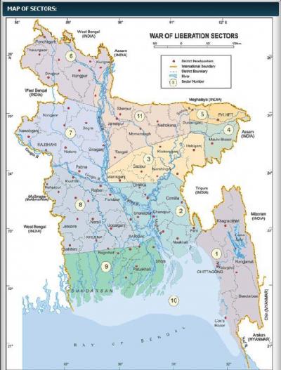 সেক্টরসমূহের তালিকা: সুষ্ঠুভাবে যুদ্ধ পরিচালনার সুবিধার্থে প্রতিটি সেক্টরকে কয়েকটি করে উপ-সেক্টরে ভাগ করা হয়।
