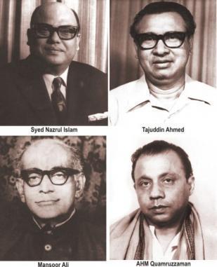 জাতীয় চার নেতা - তাজউদ্দীন আহমদ, সৈয়দ নজরুল ইসলাম, মোঃ মনসুর আলী এবং এ এইচ এম কামরুজ্জামান: