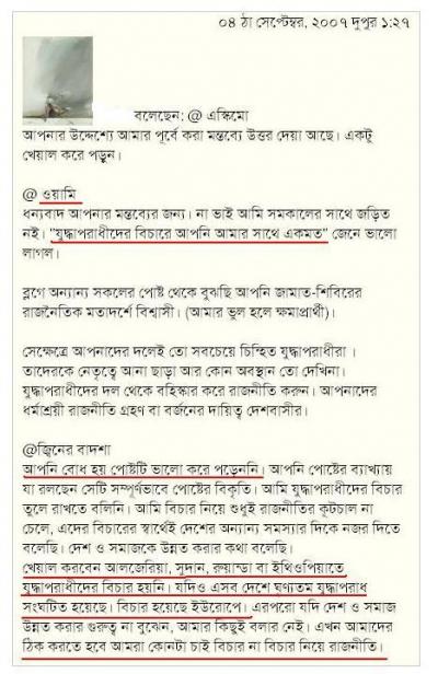 ওমি পিয়াল খারাফ নুক। এটিম করে, যৈবনজ্বালায় চটি লেকে, ছাগু পুন্দায়। ওমি পিয়াল খারাফ, এটিম খারাফ, ছাগুপুন্দানি খারাফ। এরম খারাফ কিচুর সাতে যুদ্দাপরাদীর বিচারের দাবি এক কাতারে পেলা? কাভি নেহি। যুদ্দাপরাদীর বিচারের দাবি করতে অইলে -