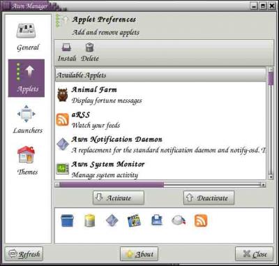 নিচের ডকটির নাম Avant। এটাও পাবেন Add/Remove এ। এটা ইন্সটল করার পর নিচের প্যানেলটি ডিলিট করে দিন। চালু উইন্ডোগুলো এই ডকে আনার জন্য ডকে রাইটক্লিক করে Doc Preference সিলেক্ট করে বামপাশ থেকে Applets সিলেক্ট করুন। এবার AWN Notification Daemon টা অ্যাকটিভেট করে দিন। আরও যা যা রাখতে চান একইভাবে অ্যাক্টিভেট করুন। এবার ডকটা একটু মডিফাই করতে হবে। Applets এর উপরের General মেন্যু সিলেক্ট করুন। এর আন্ডারে আবার General ট্যাব সিলেক্ট করুন (ডিফল্ট ভাবে করাই থাকে)। Automatically start AWN on logon এ টিক দিন, তাহলে প্রতিবার উবুন্টু চালুর সময় AWN ও চালু হবে। আপনার যদি অভ্যাস থাকে উবুন্টুর একাধিক ডেস্কটপে উইন্ডো রেখে কাজ করার তাহলে Show windows from all viewports এ টিক দিন। তাহলে সব ডেস্কটপের উইন্ডোগুলো ডকে এক সাথে দেখাবে। আপনি এক ডেস্কটপ থেকেই সব উইন্ডোতে যেতে পারবেন। কাজের সুবিধার জন্য Bar behavior থেকে Auto hide bar when not in use ও Keep below maximized windows when not in use অপশনদুটোও অ্যাকটিভেট করে নিন। আইকন ইফেক্ট থেকে আইকনগুলো সিলেক্ট করলে বা তাদের উপর মাউস রাখলে লাফাবে, ঘুড়বে না তাদের উপর স্পটলাইট পড়বে সেটা নির্ধারণ করে দিন। Bar Appearance ট্যাব থেকে 3D look সিলেক্ট করে দিল। Enable rounded corners এও টিক দিন। তার নিচে Bar angle, height, offset ইচ্ছামত দিন যেটা ভাল লাগে। কালারও কাস্টমাইজ করতে পারেন। হয়ে গেলে বের হয়ে আসুন। এবার দেখুন আপনার ডেস্কটপ এখন লিনাক্স, ম্যাক আর উইন্ডোজের মিশ্রণ! উবুন্টু একাই একশ!!!