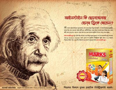 আধুনিক পদার্থবিজ্ঞানের জনক অ্যালবার্ট আইনস্টাইনের নাম ও ছবি নিয়ে আধুনিক প্রতারণায় নেমেছে দেশের অন্যতম শীর্ষস্থানীয় ব্যবসা প্রতিষ্ঠান আবুল খায়ের গ্রুপ। আইনস্টাইনের ছবি ব্যবহার করে প্রতিষ্ঠানটি ‘মার্কস অ্যাকটিভ স্কুল’ গুড়ো দুধের বিজ্ঞাপন তৈরি করে ব্যাপক প্রচার চালাচ্ছে। বিজ্ঞাপনটিতে বলা হচ্ছে, আইনস্টাইনের ছেলেবেলায় হেলথ ড্রিংক উদ্ভাবনই হয়নি। সে সময় নির্ভেজাল প্রাকৃতিক খাবার ছিল; এসবের একটিহচ্ছে গরুর খাঁটি দুধ। কৃত্রিম বা আর্টিফিসিয়াল হেলথ ড্রিংকস কখনই দুধের বিকল্প নয়।