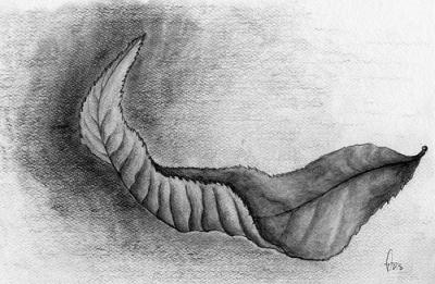 এবার এই পাতাটা দেখুন। পাতাটাকে দুই ভাগে দেখুন, ১ম ভাগ হল বাম দিকের মরানো অংশ আর ২য় ভাগ হল পাতার ডান দিকের অংশ। {এখানে একটা ব্যাপার বলতে চাই যদিও এই ব্যপারটা আরো পরে বললে ভাল হত। স্কেচ করার সময় ১টা জিনিস সব সময় মনে রাখতে হবে আর তা হল স্কেচে ২টা পার্ট থাকে, (