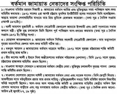 এখন কথা হলো, ১৯৭১ সালে আমার জানামতে নীচের ৩ জনের নামে মামলা হয়েছিলো দালাল আইনে যারা এই মুহূর্তে আন্তর্জাতিক অপরাধ (ট্রাইবুনাল) ১৯৭৩ এর মাধ্যমে অভিযুক্ত হিসেবে কারাগারে বন্দী রয়েছে।