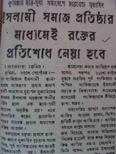 ১) ইত্তেফাকের একটি রিপোর্টঃ ১৯৭৩ সালের ডিসেম্বর মাসের ৫ তারিখে,