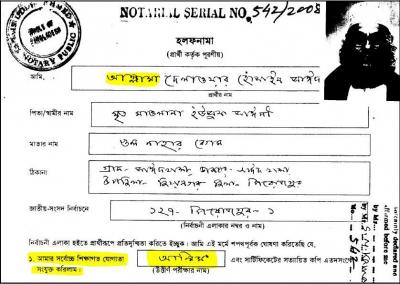 এফিডেভিটে যা লেখা রয়েছে তা হুবুহু নীচে উল্লেখ করা হোলোঃ
