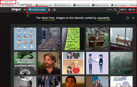 প্রথমে পোস্টের কোন জায়গায় ছবিটি আপলোড করতে চান, সেখানে মাউস দিয়ে ক্লিক করে এই লিঙ্কে ক্লিক করুন। নিচের ছবিটির মত একটি ওয়েব পেইজ লোড হবে। উপরের ডান পাশে সাইন-আপ অপশন থেকে আপনার সুবিধার জন্যই সাইন-আপ করে নিন। সাইন আপ না করলেও হবে। কিন্তু তখন একটু বাড়তি ঝামেলা পোহাতে হবে।